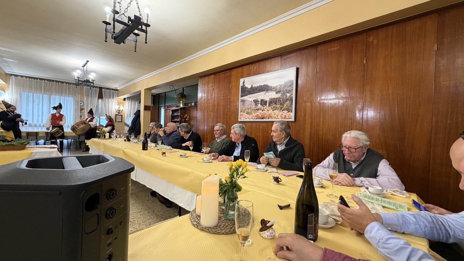 y los excelentes vinos con los que nos agasaja Miguel Todo amenizado por gaitas y bombos |
